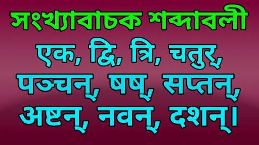 সংখ্যাবাচক শব্দ – এক, দ্বি, ত্রি, চতুর্, পঞ্চন্, ষষ্, সপ্তন্, অষ্টন্, নবন্, দশন্।